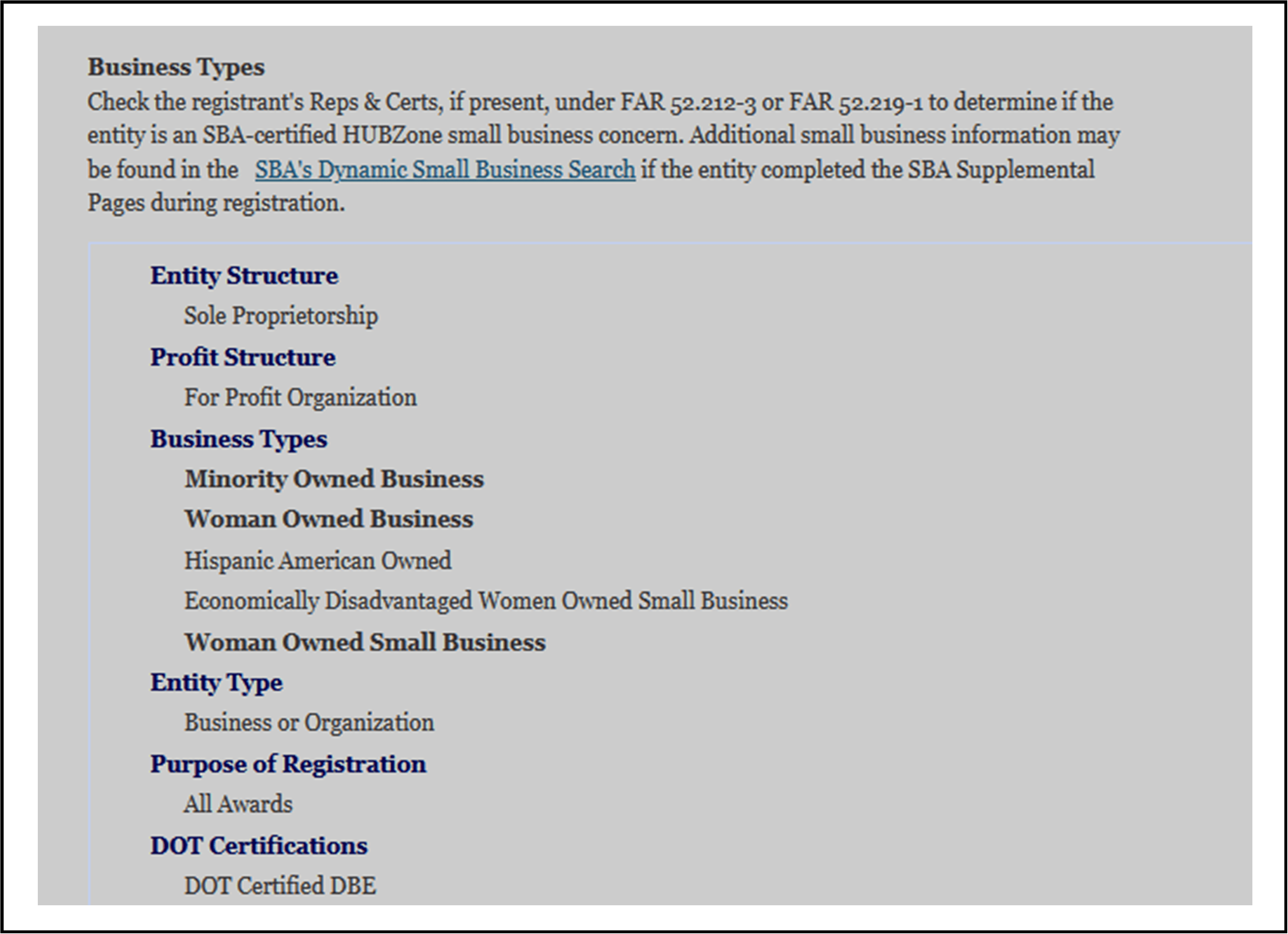 SBA Contractor Registration CAGE Code #6UL30